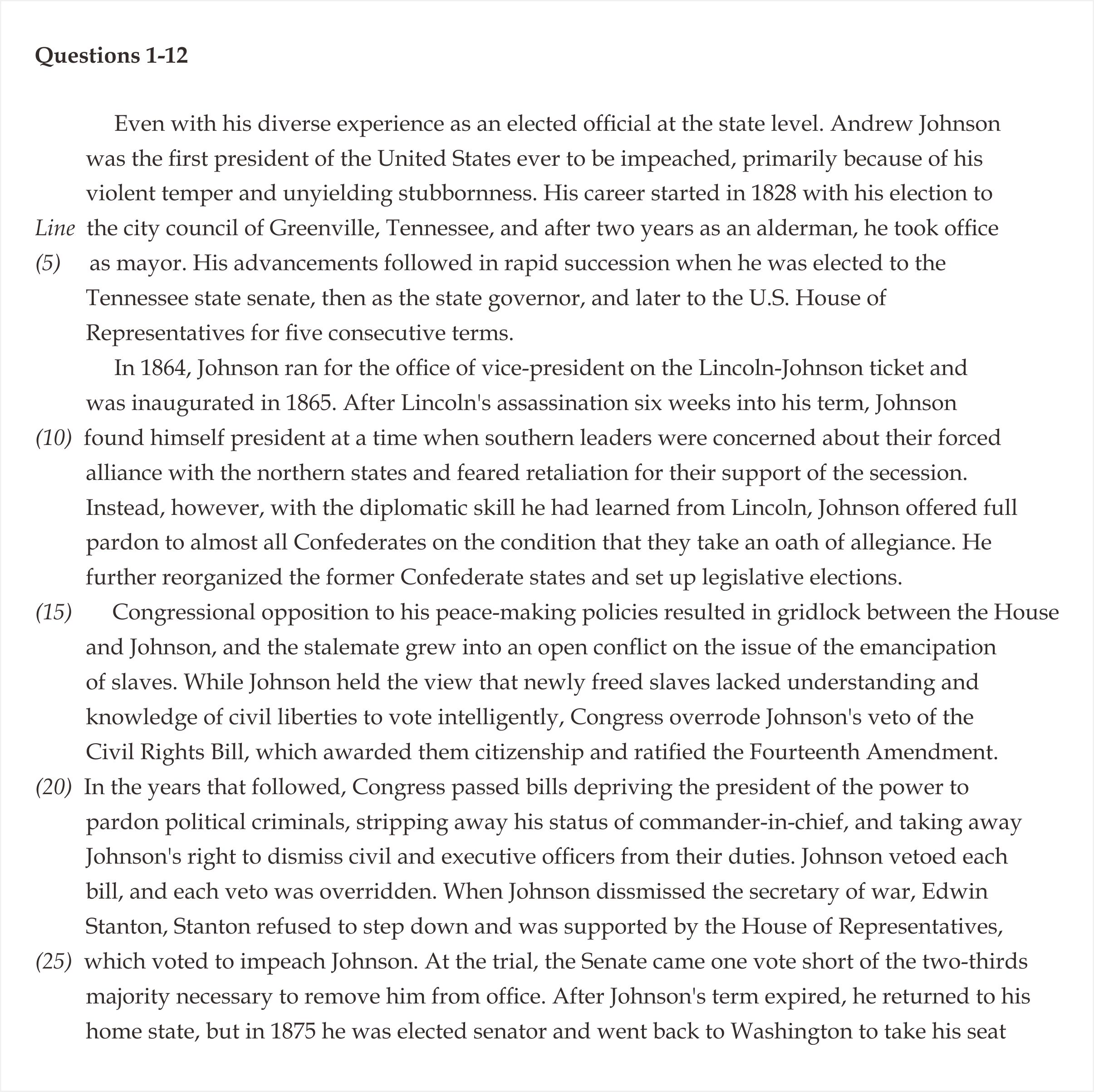 12. According to the passage, the attempt to impeach Andrew Johnson