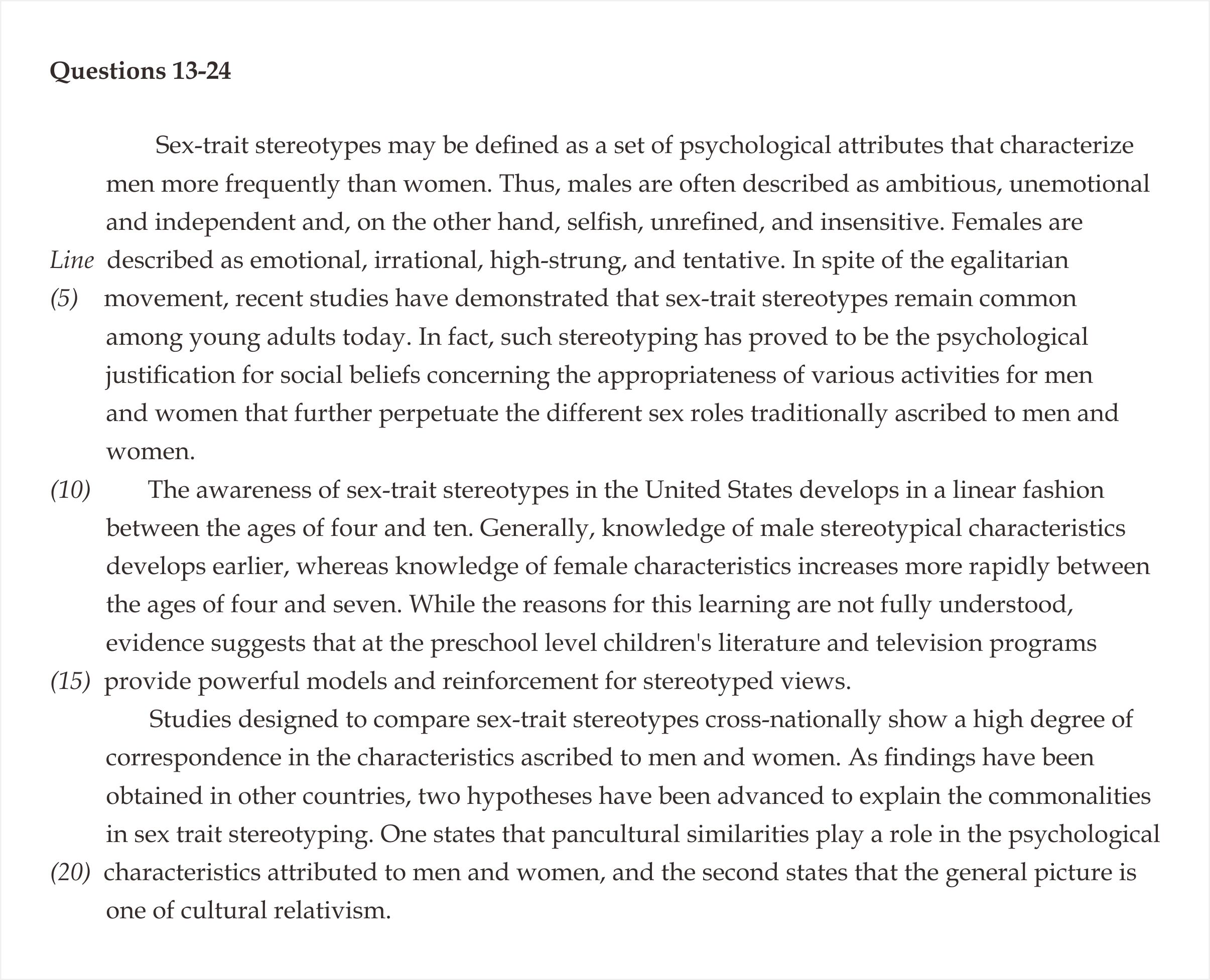 21. According to the passage, characterizations of men and women as having particular sets of attributes are