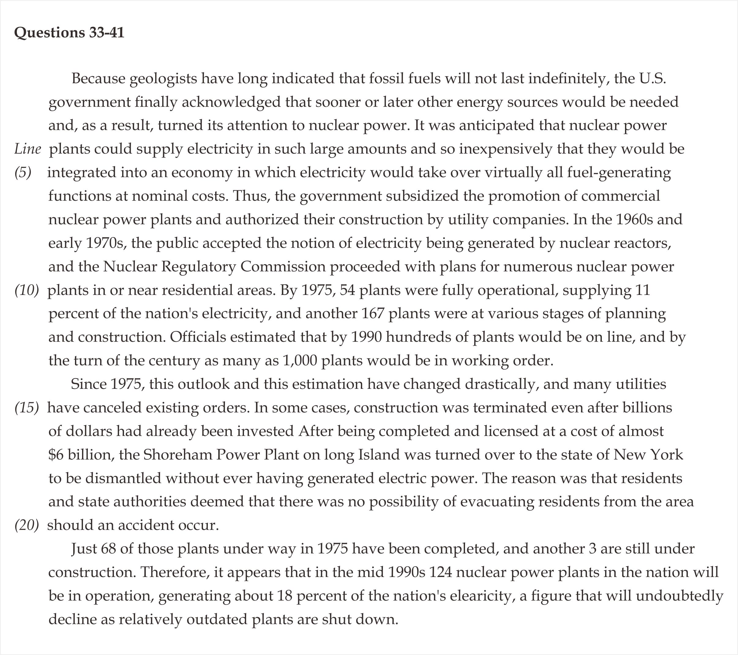 39. The author of the passage implies that the construction of new nuclear power plants