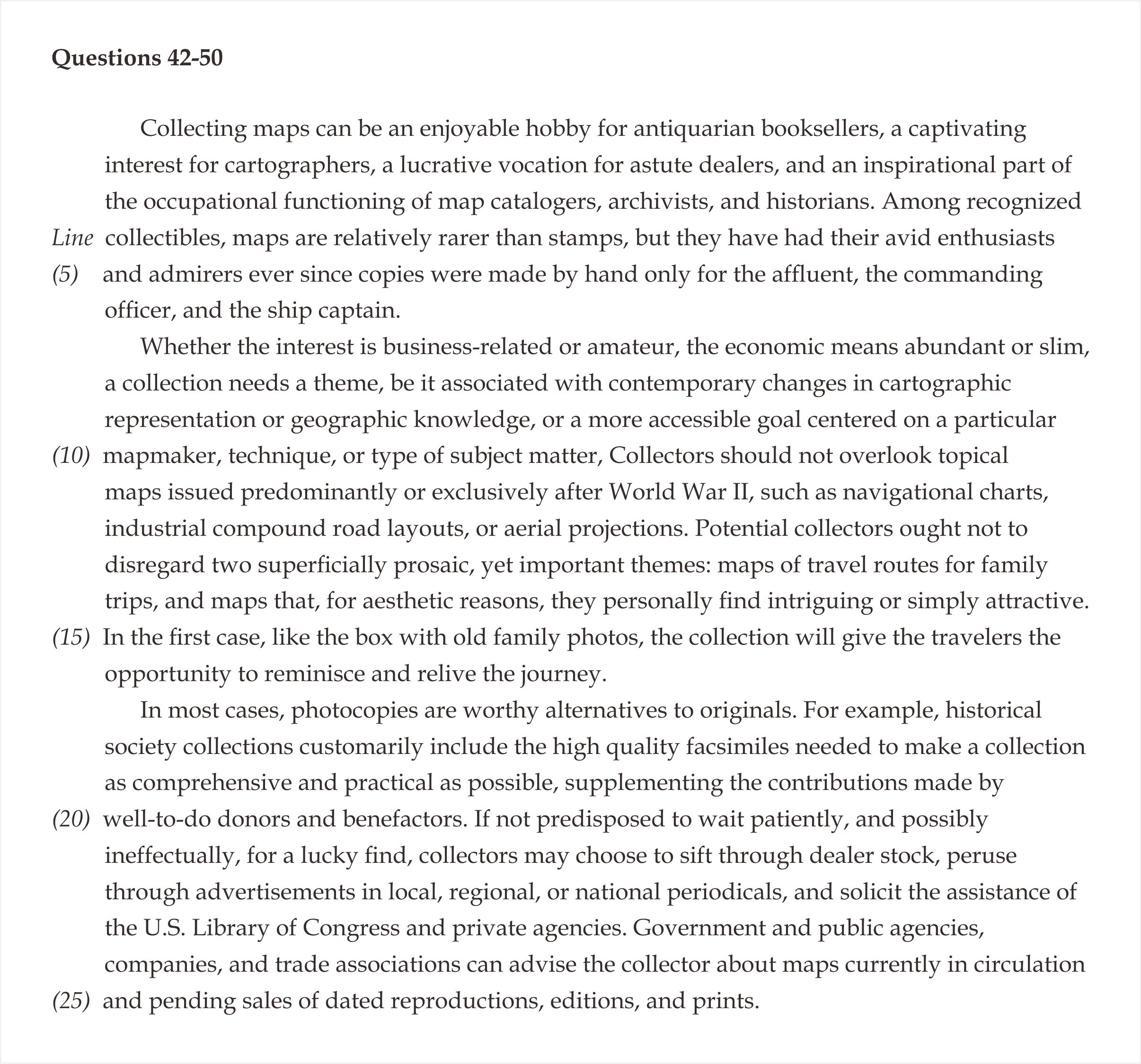 45. It can be inferred from the passage that, at a time when maps were accessible to the upper socioeconomic classes, they appealed also to a fair number of